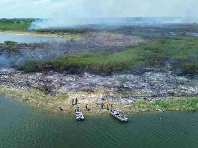 El fuego, que avanza rápidamente hacia las viviendas, ya afectó al menos una casa y amenaza con destruir más, lo que obligó a la Policía Nacional, la Armada Paraguaya y el Cuerpo de Bomberos Voluntarios del Paraguay (CBVP) a desplegar un operativo de emergencia.