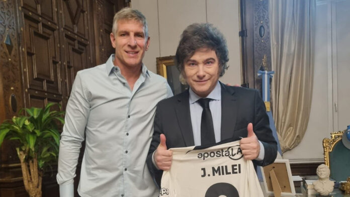 Martín Palermo, actual entrenador de Olimpia de Paraguay, tuvo un inesperado encuentro con el presidente de Argentina, Javier Milei, durante su visita a Buenos Aires. El «Titán», reconocido ídolo del fútbol argentino, no solo aprovechó la ocasión para saludar al mandatario, sino que también le obsequió una camiseta de Olimpia, club que dirige actualmente.