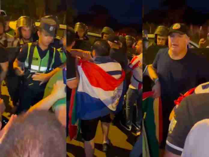 Los enfrentamientos con la Policía Nacional marcaron la jornada de protestas. Según los manifestantes, los agentes intentaron reprimir la movilización utilizando gases lacrimógenos, aunque los incidentes no escalaron.