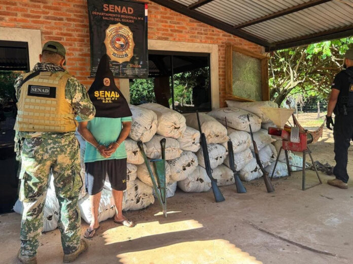 La Secretaría Nacional Antidrogas (SENAD) ha dado un nuevo golpe al narcotráfico en Paraguay, con la incautación de más de 7 toneladas de marihuana en un operativo llevado a cabo en el departamento de Canindeyú. En la operación, realizada a menos de un mes de un megaoperativo similar en la zona, fueron detenidas cuatro personas, entre ellas un adolescente de 17 años, involucradas en una red de tráfico de drogas que operaba a gran escala.